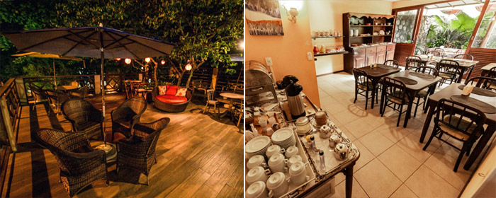 O café da manhã regional é servido num salão com extensão para um charmoso jardim de inverno. Na área de convivência para hóspedes é possível admirar o famoso mar do Rio Vermelho através da sala, decorada com elegância e estilo próprios.